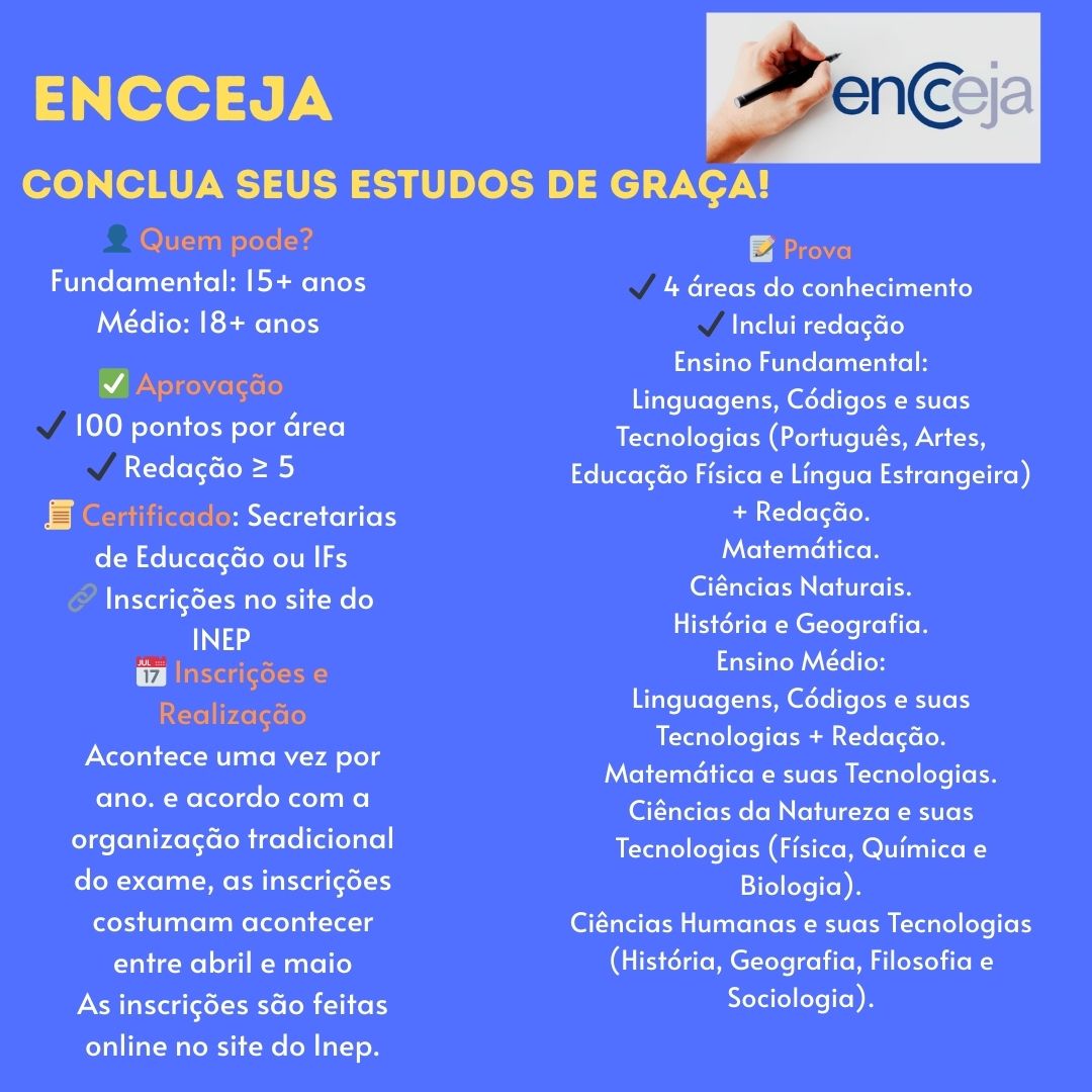 (ENCCEJA, ENEM ATÉ 2016, SUPLETIVO, CURSO PROFISSIONALIZANTE)